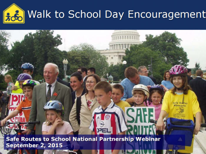 2015-09-02T12:00:00 This webinar from September 2, 2015 discusses tips and strategies for hosting a successful Walk to School Day event. Related Files Rosie Mesterhazy: Safe Routes to School National Partnership slides David Homak: Superintendent, Holt MI slides Shane MacRhodes: Bike Parking Assessment slides Waffiyyah Murray: Safe Routes Philly slides web resource Webinar Recording on Slideshare Authored by Safe Routes to School National Partnership filed under Main Topic Safe Routes to School Topic Mode Share and Travel Behavior Safe Routes to School Programs Audience Parents/ Guardians School Geography School language English Resource Type Webinar